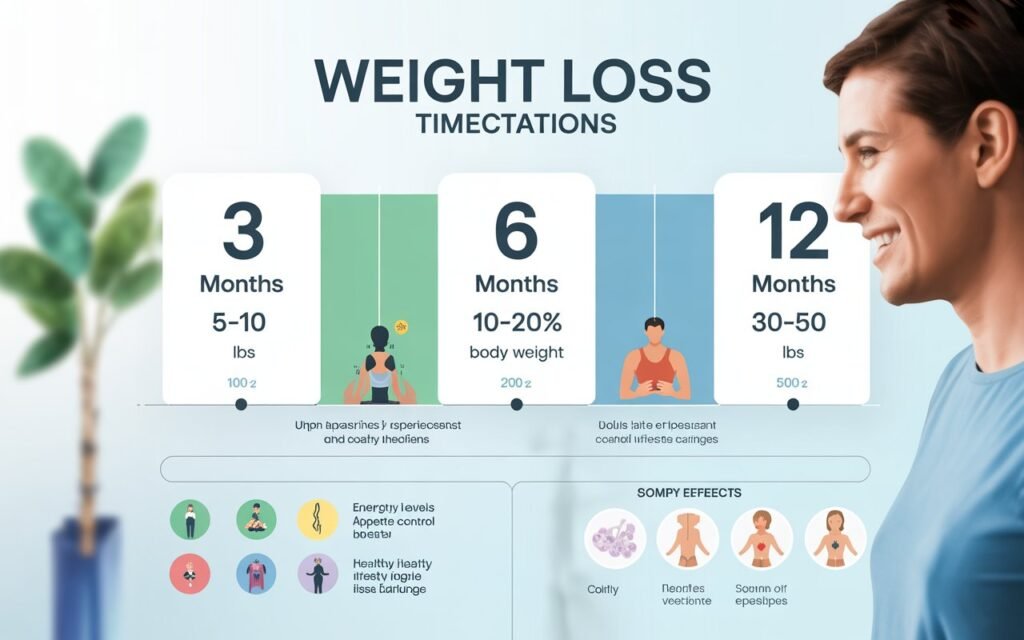 The general trend clarifies that individuals experience quite different results owing to factors such as the following: At 3 months: Gain or loss of about 5-10 pounds, with particular initiatives being relied on the individual’s starting weight and dosage. At 6 months: Some individuals have reported losses of body weight to an extent of 10-20% of their total weight. At 12 months, Most people can lose between 30 and 50 pounds when combined with healthy living.